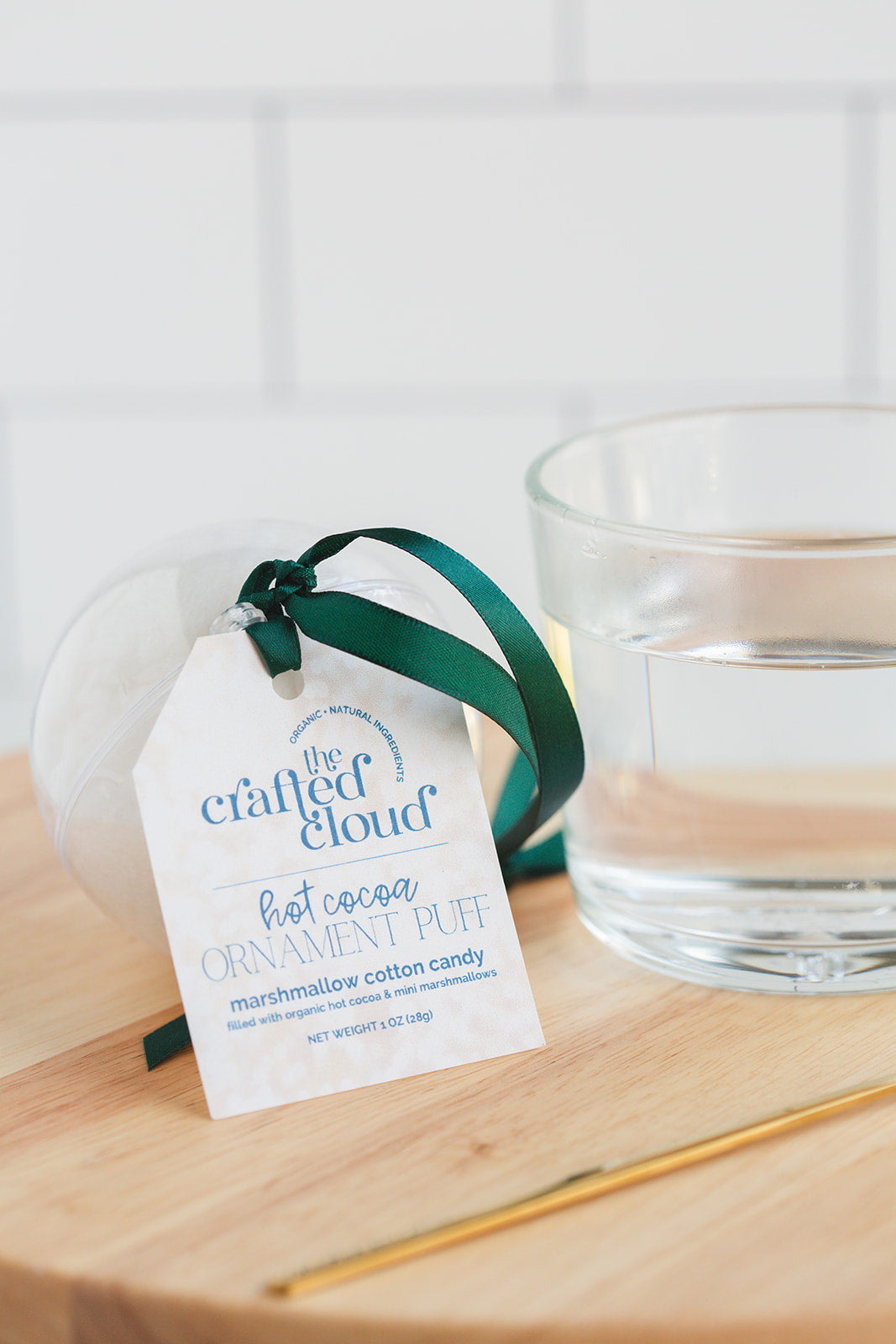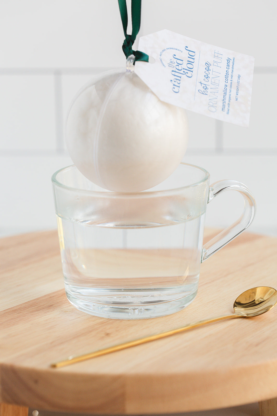 🎁 Made with organic hot cocoa mix, sprinkled with all natural vanilla flavored marshmallows, and wrapped up in a huge puff of marshmallow cotton candy. All tucked into these adorable ornament containers and ready to be enjoyed! Includes a gold keepsake stir spoon. Simply heat water or milk, drop in your puff, stir, and sip!